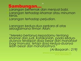 Mereka bertanya kepadamu tentang khamar dan judi. Di antara sekian aturan ekonomi tersebut Islam membuat sejumlah larangan dalam kegiatan ekonomi. Sebenarnya penggunaan istilah ekonomi Islam tidak steril dari perdebatan.