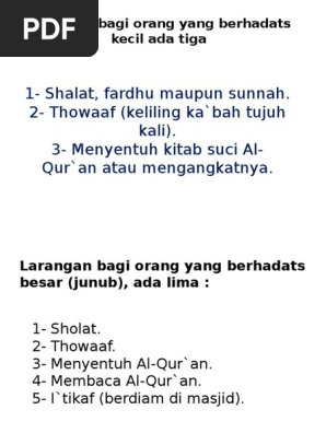 Larangan Bagi Orang Yang Berhadats Kecil Hadas Besar Dan Haid Bagi Perempuan Pdf