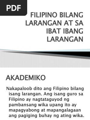 Filipino Bilang Larangan At Sa Ibat Ibang Larangan Pdf